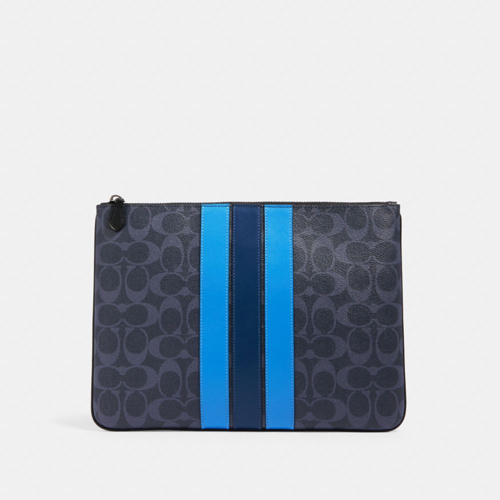 COACH Outlet COACH Outlet Large Pouch In Signature Canvas With Varsity Stripe Very well made.
