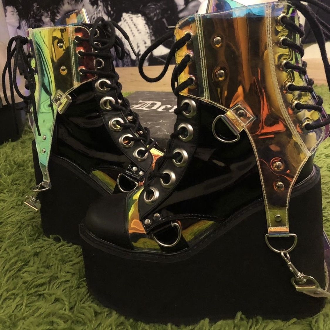 Demonia Holographic Platform Wedge Boots Black Very well made.