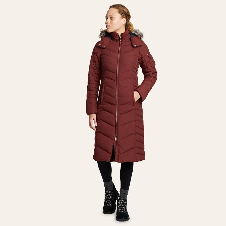 Eddie Bauer Women s Glacier Peak Seamless Stretch Down Duffle Coat Nutmeg XS Shop Gifts for Her Very well made.