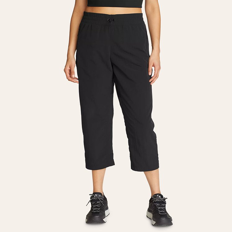 Eddie Bauer Women s Mountain Crinkle Cropped Pants Black L Shop Gifts for Her Very well made.