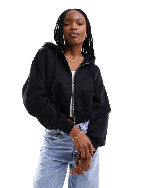 Pimkie Felpa corta nera con cappuccio e zip ASOS Very well made.