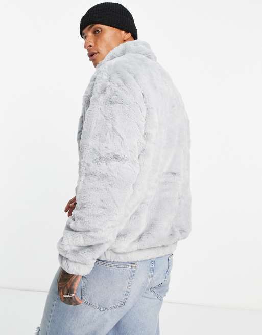 ASOS DESIGN oversized faux fur half zip sweatshirt in light grey Very well made.