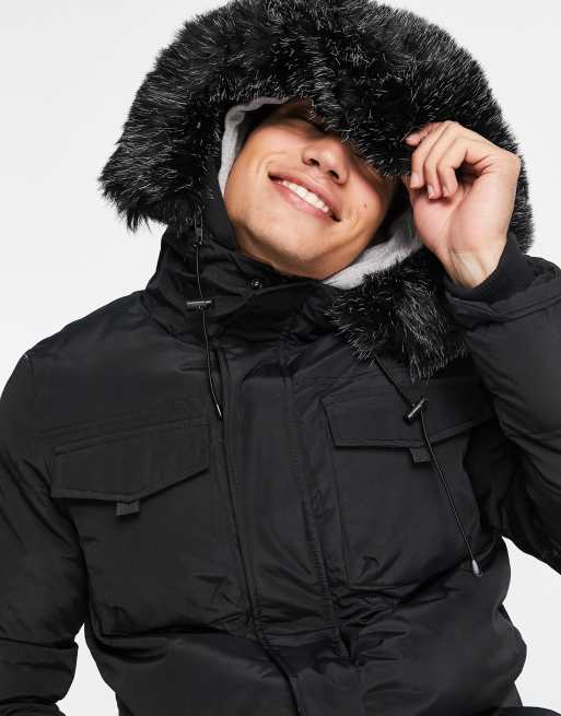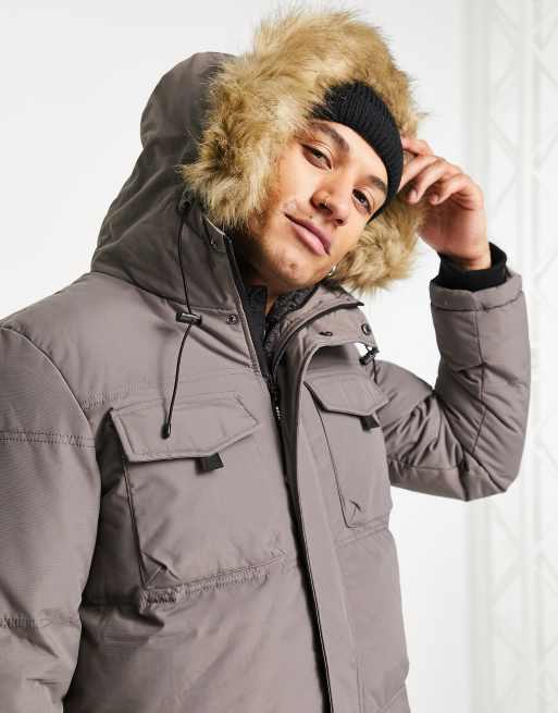 Good For Nothing parka jacket in taupe with fur hood Very well made.
