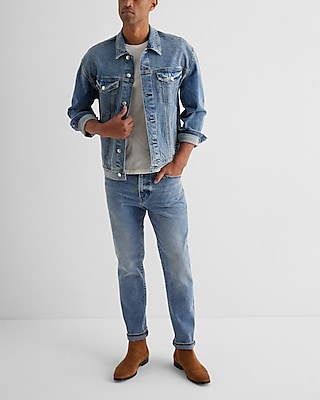 Express Jeans Womens L Denim Jacket Biker Trucker Coat 100 Cotton Very well made.