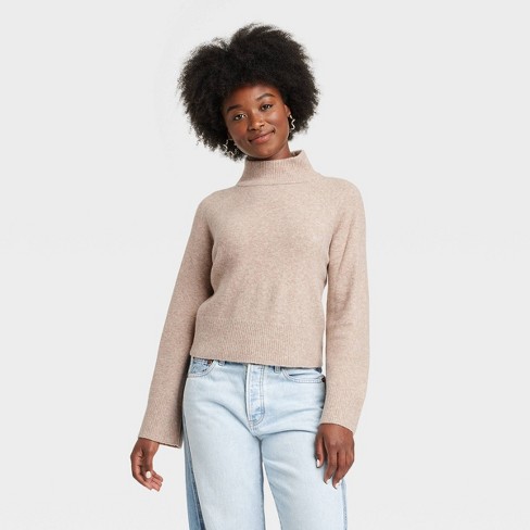Women s Cozy Knit Mock Turtleneck Pullover Sweater Universal Thread Tan S Target Very well made.