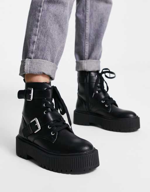New Look chunky flatform lace up flat boot in black ASOS Very well made.