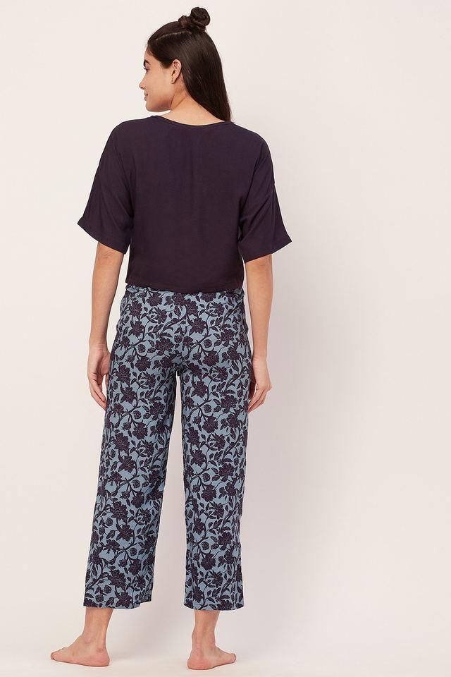 Buy MOOMAYA Blue 2 Pc Night Suit For Women Calf Length Capri Pants With Top Shoppers Stop Very well made.