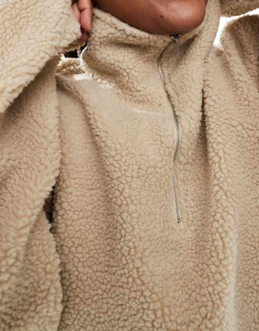 ASOS Design Curve Oversized Half Zip Teddy Fleece in Neutral Very well made.