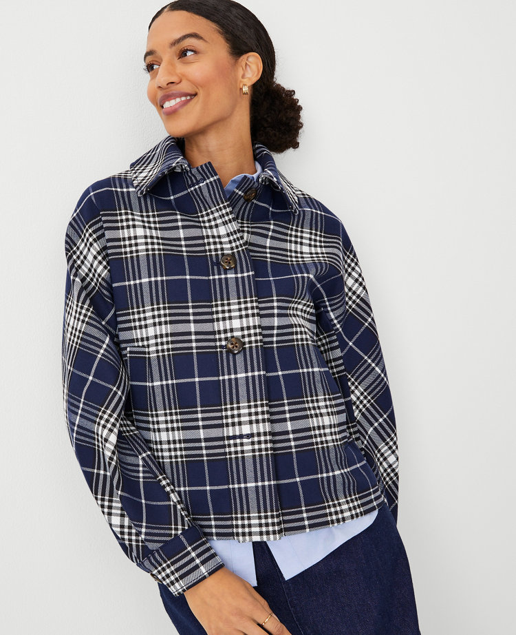 Petite Plaid Twill Cropped Mac Jacket Very well made.