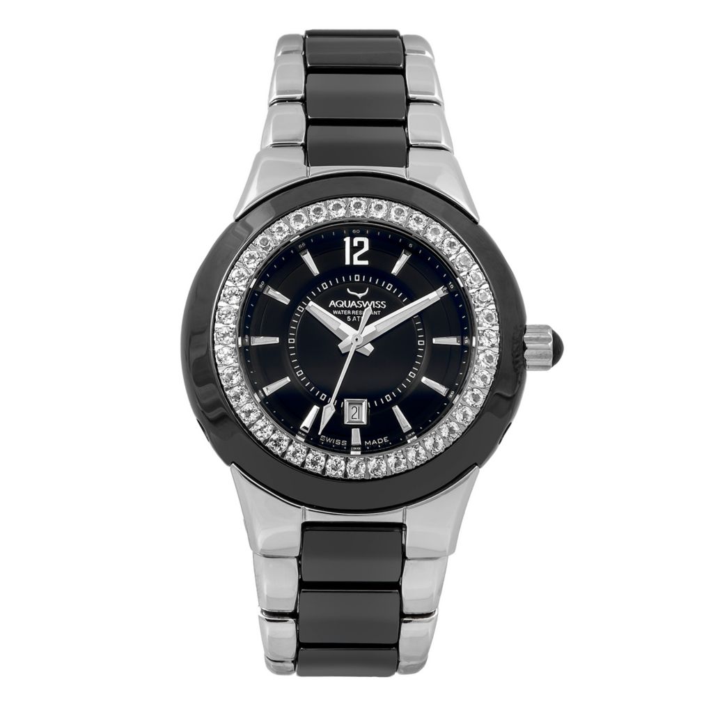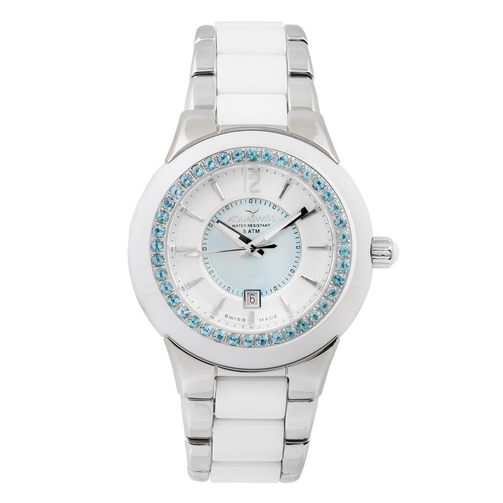 Aquaswiss 38mm Sea Star Swiss Made Quartz Gemstone Accented Ceramic Stainless Steel Bracelet Watch on sale at shophq 636 976 Very well made.