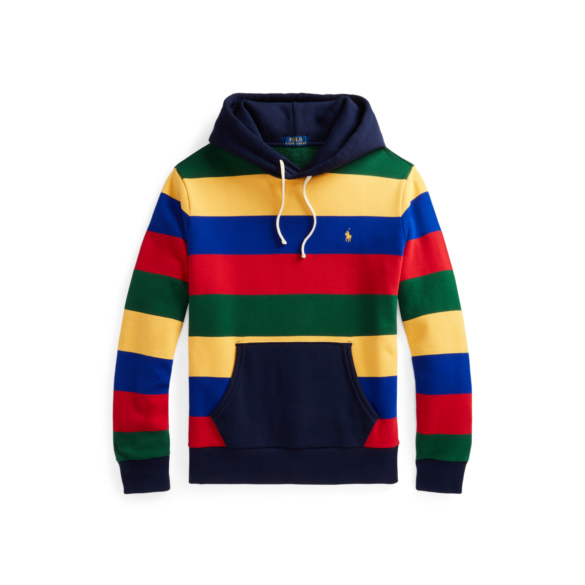 POLO RALPH LAUREN LOGO STRIPED FLEECE HOODIE Off white Men s Hooded Sweatshirt YOOX Very well made.