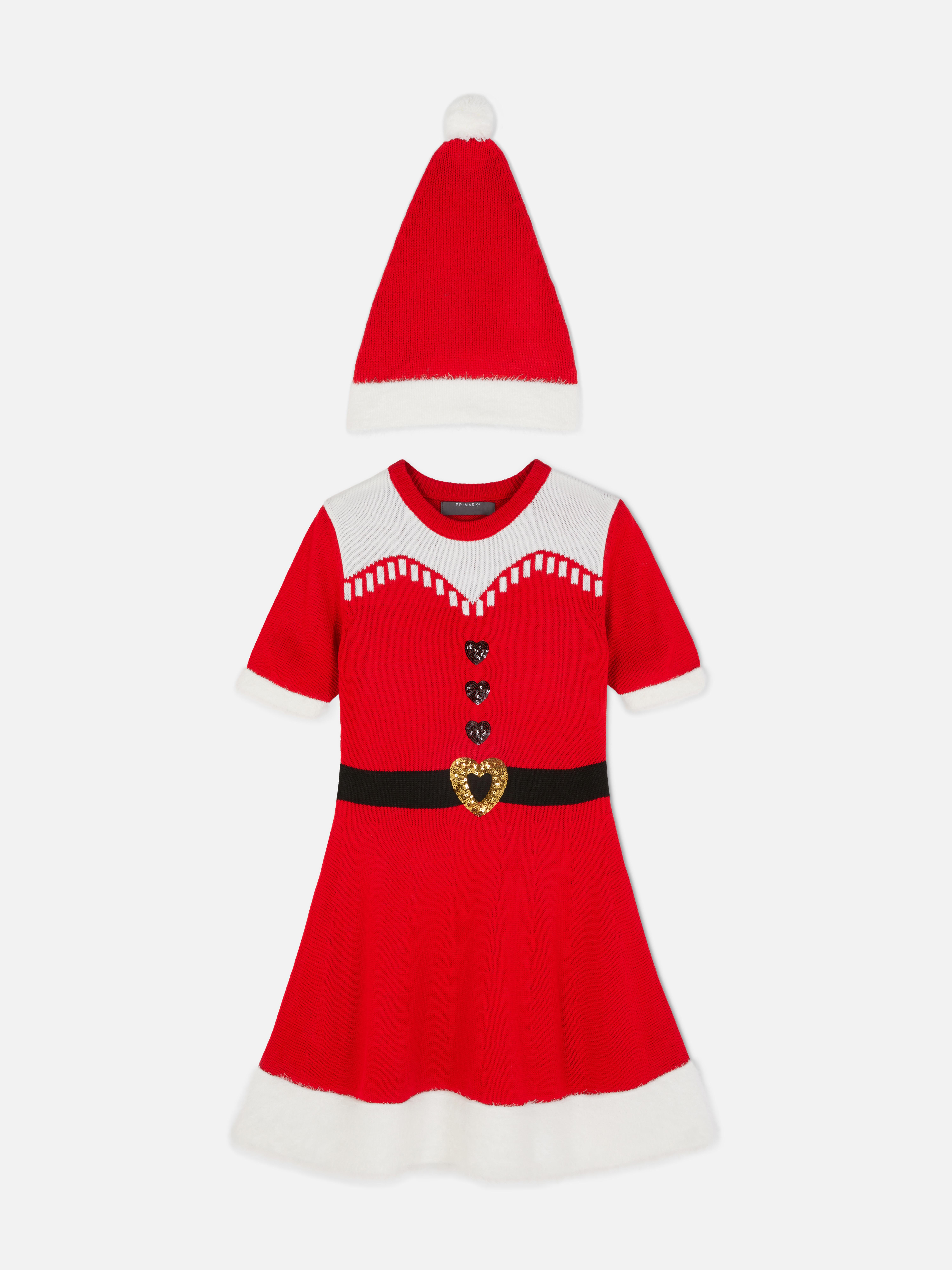 Girls Red Christmas Santa Jumper Dress and Tights Set Primark Very well made.
