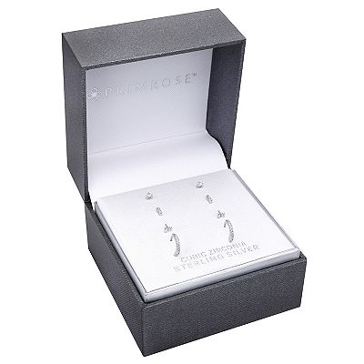 PRIMROSE Sterling Silver Cubic Zirconia Stud Huggie Hoop Earring Set Very well made.