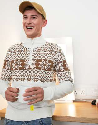Threadbare fairisle quarter zip christmas jumper in ecru ASOS Very well made.