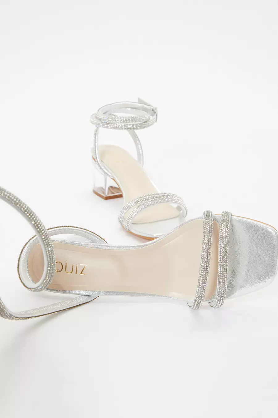 Silver Diamante Clear Low Heeled Sandals QUIZ Clothing Very well made.