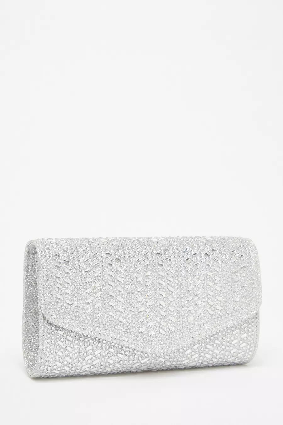 Silver Diamante Embellished Clutch Bag QUIZ Clothing Very well made.