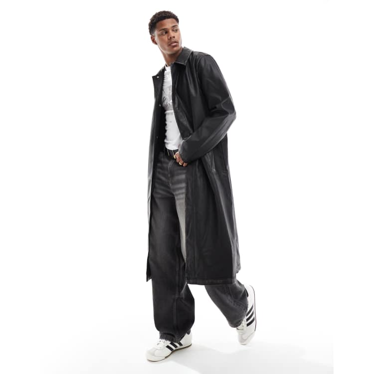 ASOS DESIGN oversized distressed faux leather trench coat in black ASOS Very well made.