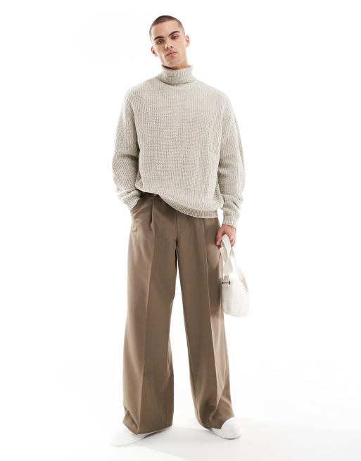 ASOS DESIGN oversized knitted fisherman rib roll neck jumper in oatmeal twist ASOS Very well made.
