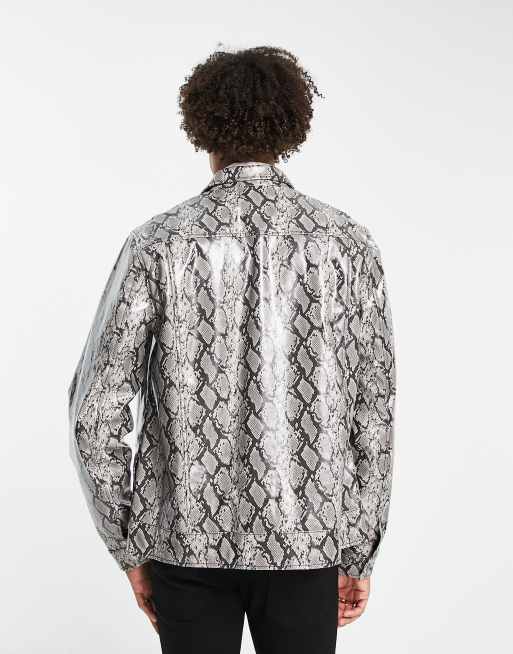 ASOS DESIGN snake print harrington jacket in grey Very well made.