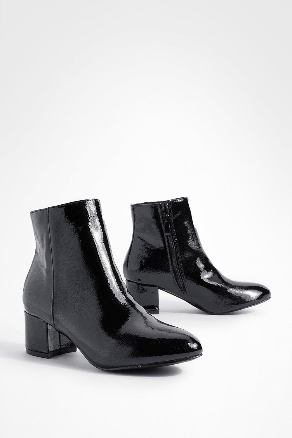 Stivaletti effetto vernice con tacco basso a blocco Very well made.