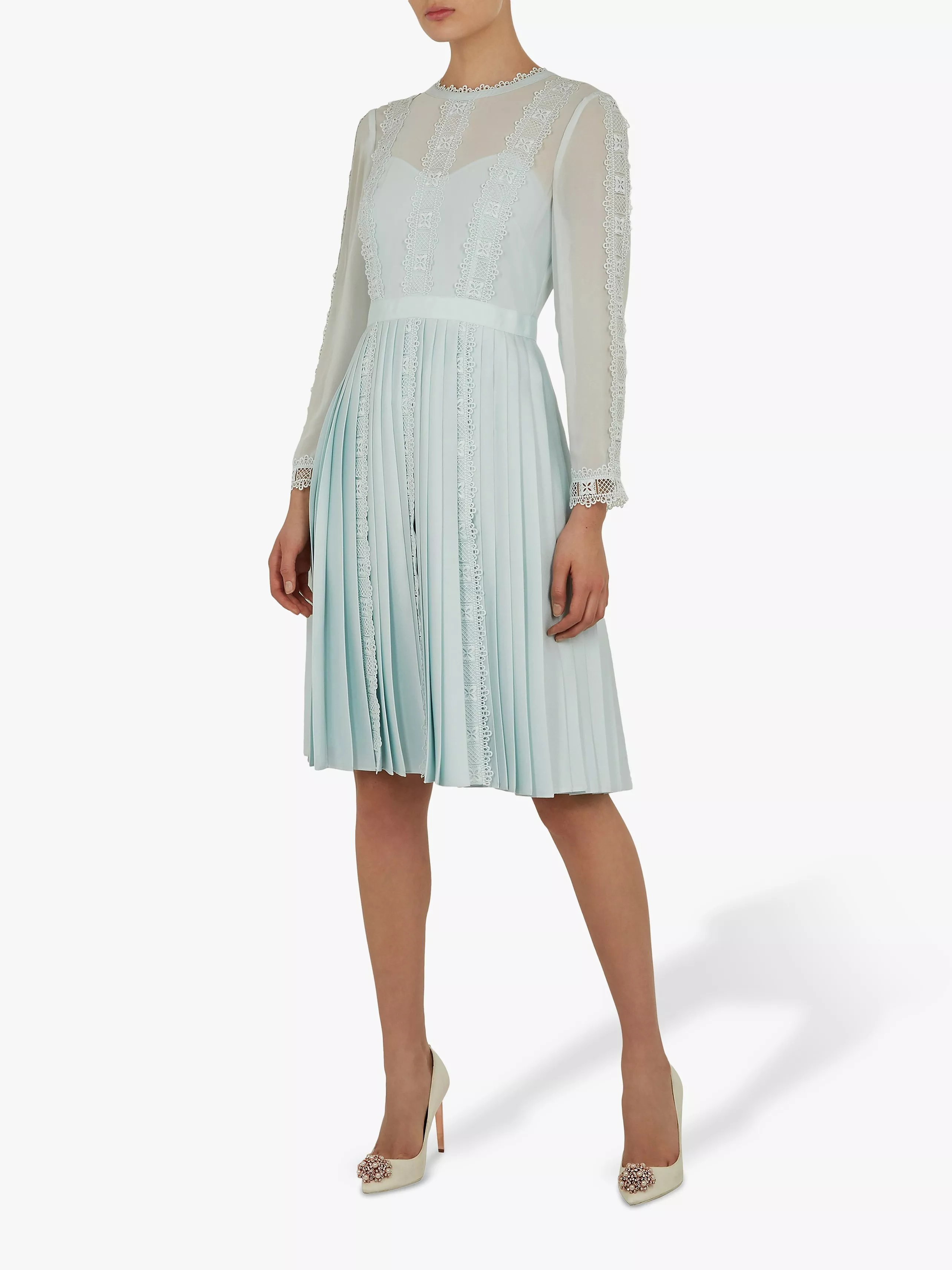 Ted Baker Diannah Lace Trim Pleated Dress Blue Light Very well made.
