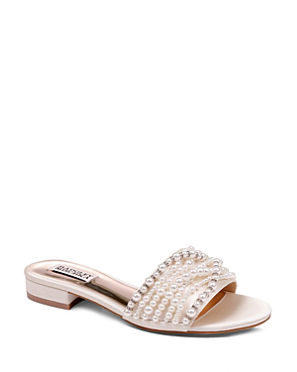 Badgley Mischka Women s Florentina Faux Pearl Rhinestone Slide Sandals In Ivory Satin ModeSens Very well made.
