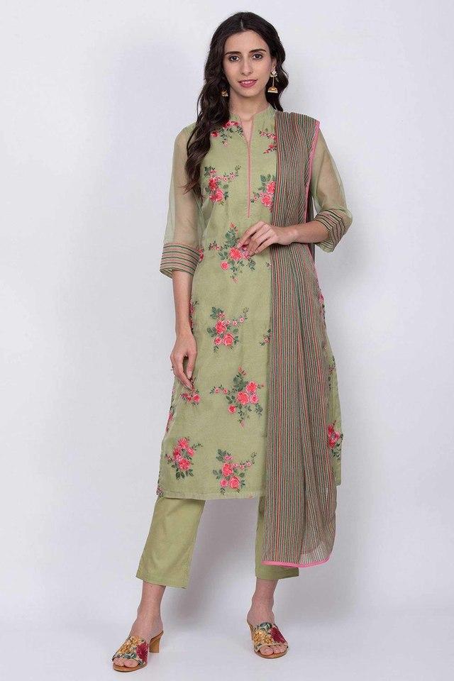 Olive Green Straight Kurta Regular Pant Suit Set at Biba India Very well made.