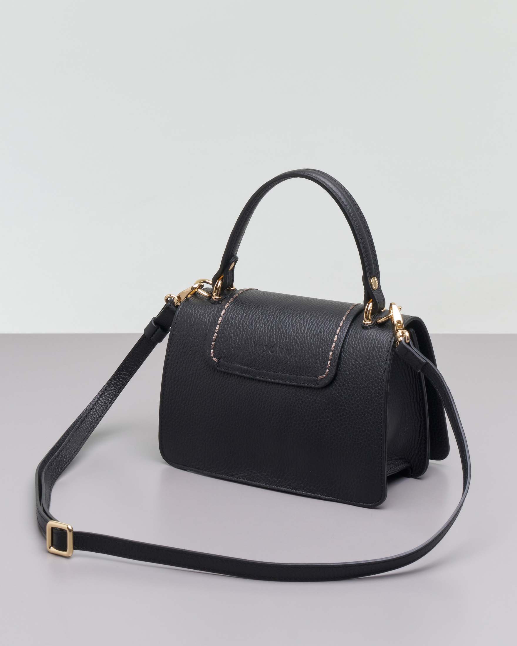 Borsa a mano piccola nera in pelle martellata con patta e doppia tracolla Very well made.