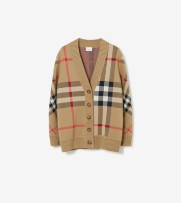 Check Wool Blend Cardigan in Archive beige Women Burberry Official Very well made.